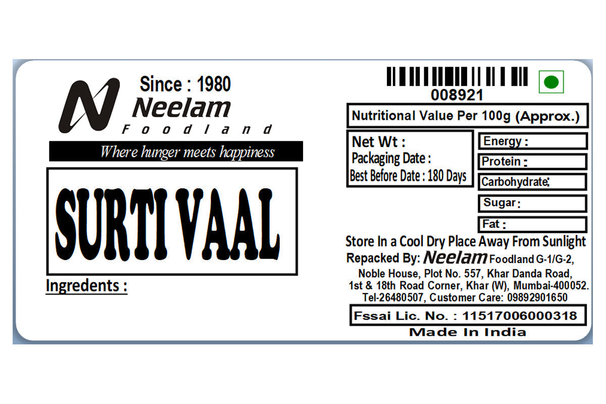 White Field Beans/Surti Vaal 500 Gm